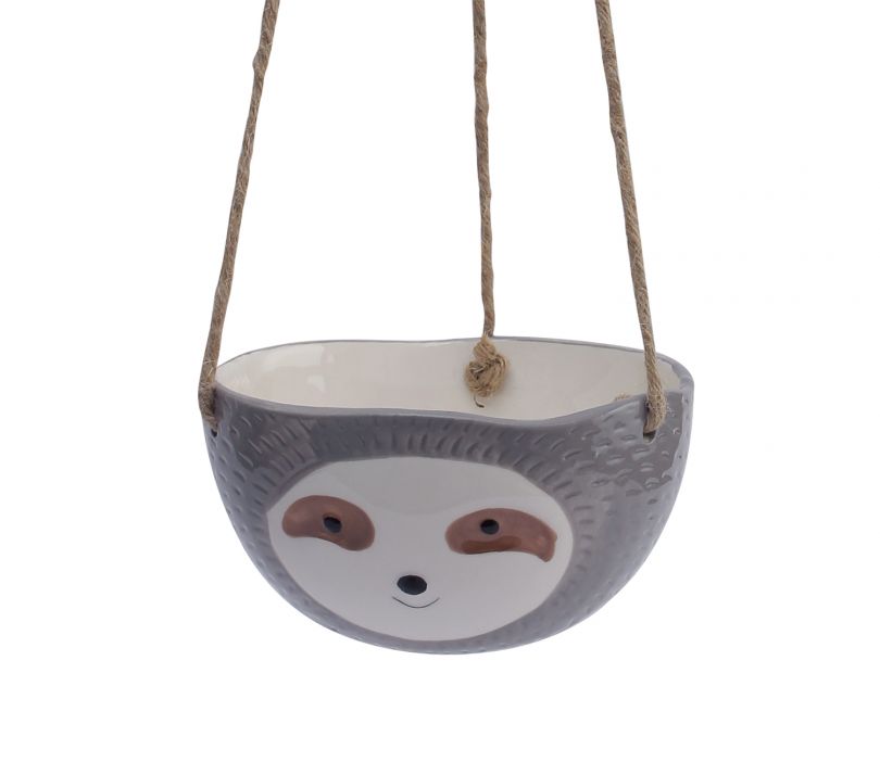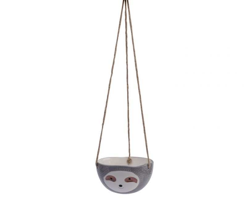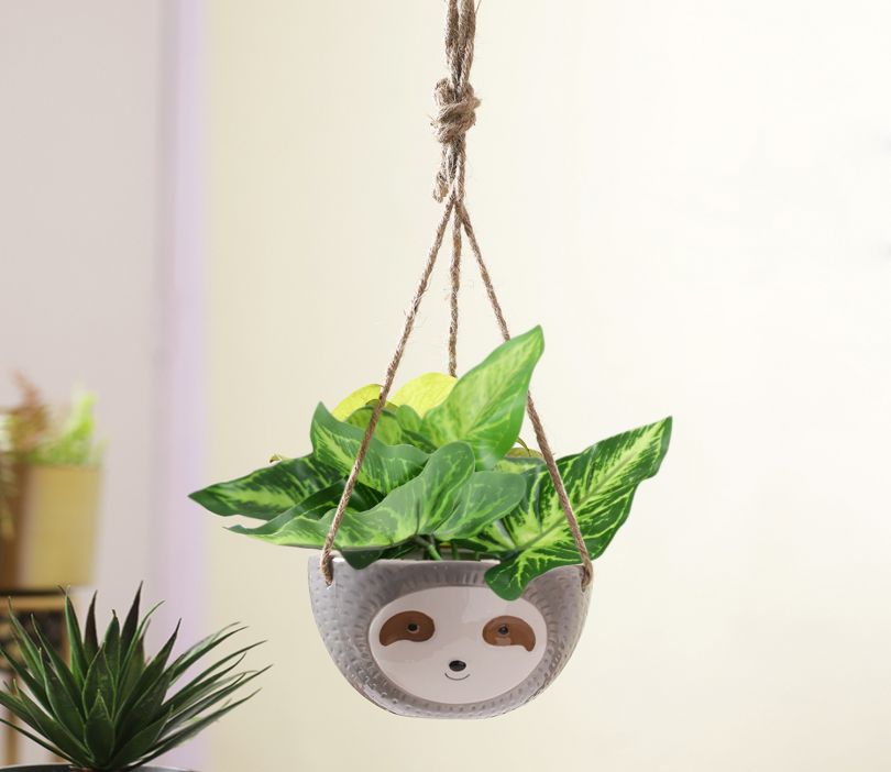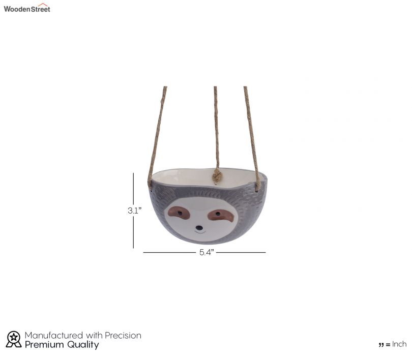 Green Baby face Hanging Ceramic Planter In Grey Color